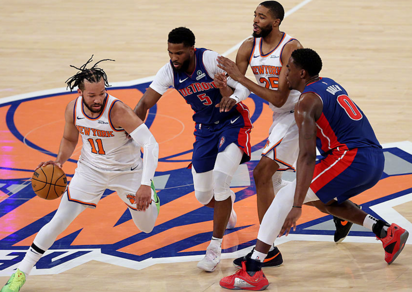 VORP不可替代值3.0联盟第21位,每48分钟胜场贡献值0.161联盟第23位,真实命中率57.9%联盟第105位。综合评定来看,布伦森数据联盟第25位左右的球星,全明星边缘的水平。当然,布伦森有足够的产量保证,自从他来到尼克斯后,尼克斯季后赛保底次轮,而且过去三个赛季,布伦森季后赛场均得分超过29分,看起来还挺不错!但事情哪那么简单?举几个例子吧,布伦森的高端局确实让人捏把汗,最近一场打火箭,布伦森14中5只拿到12分,被阿门和伊森防懵了,甩又甩不掉,冲又冲不过,跳起来又被盖!